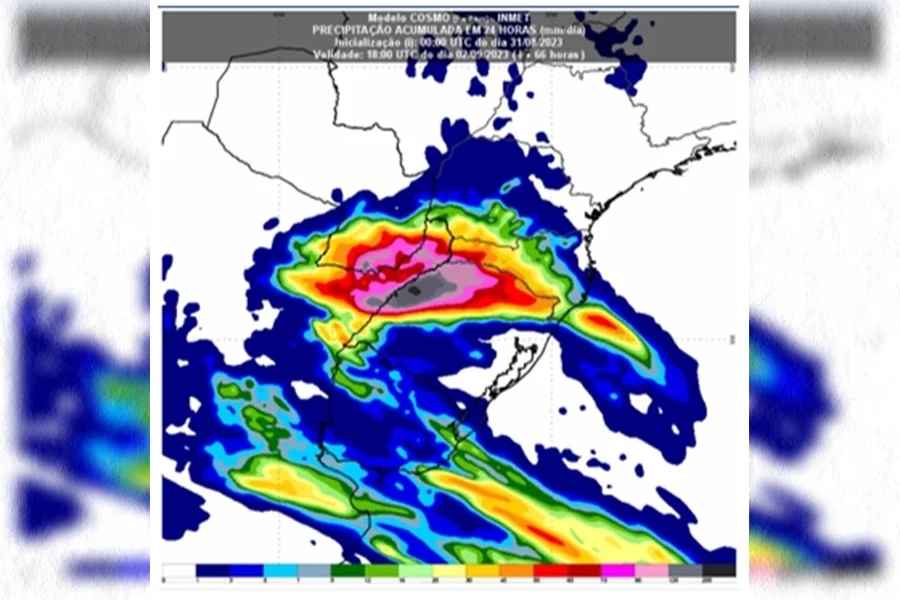 As informações são do Inmet (Instituto Nacional de Meteorologia), que prevê que o fenômeno deverá seguir para o oceano depois de passar pelo território brasileiro.