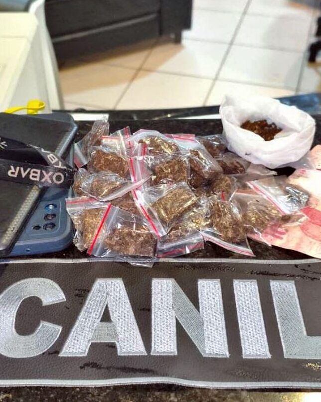 Com o apoio do cão de faro Zeus, os agentes realizaram buscas nas proximidades e encontraram escondidas em um muro mais 28 porções idênticas de maconha. Diante dos fatos, a ocorrência foi apresentada na Delegacia de Polícia. O indivíduo apontado como responsável pela venda dos entorpecentes permaneceu preso em flagrante, à disposição da Justiça.